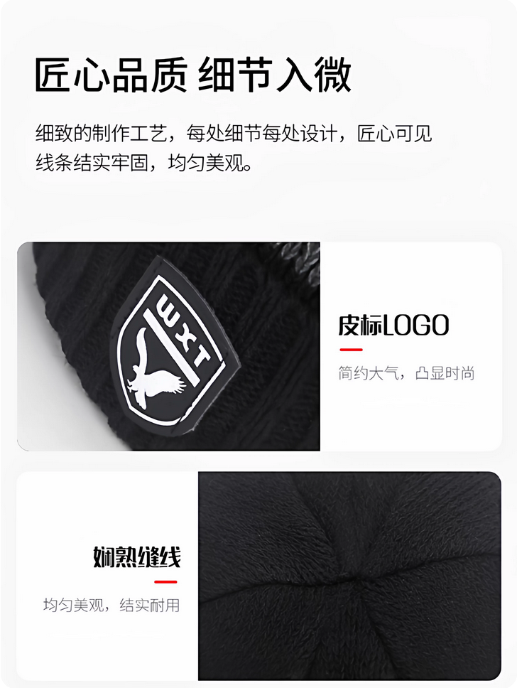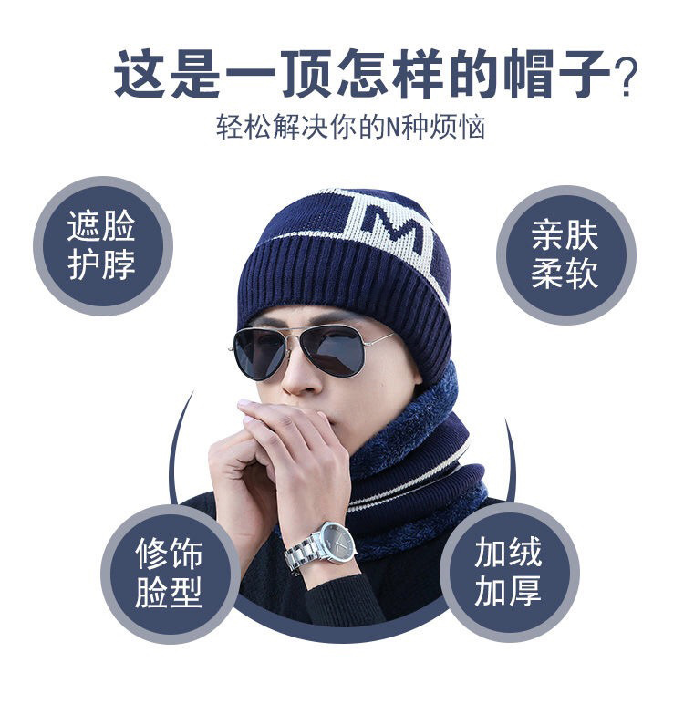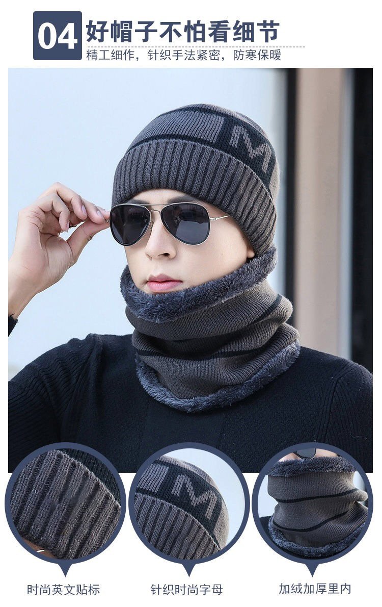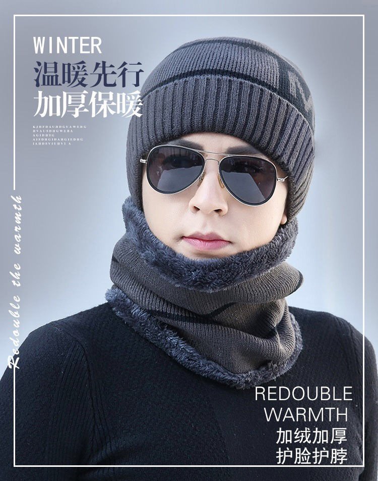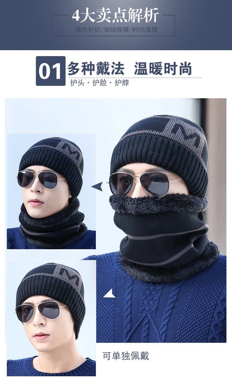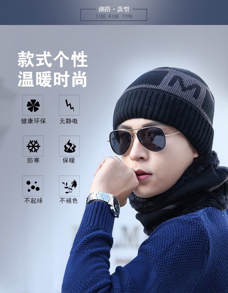 帽子男冬防寒针织帽加厚保暖毛线帽加绒冬季骑行电动车防风护耳罩