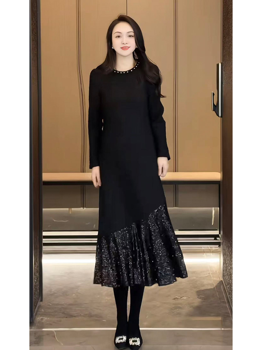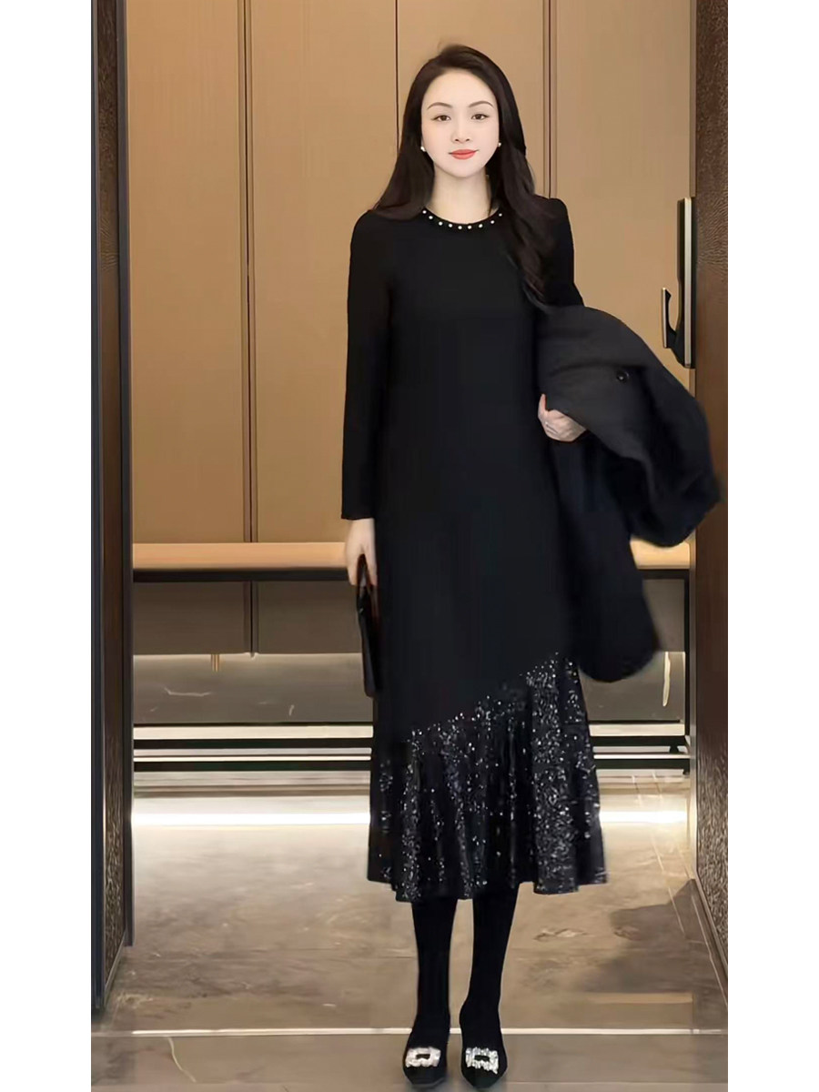 大码2025秋冬新款重工钉珠亮片裙子微胖MM设计气质洋气百搭...