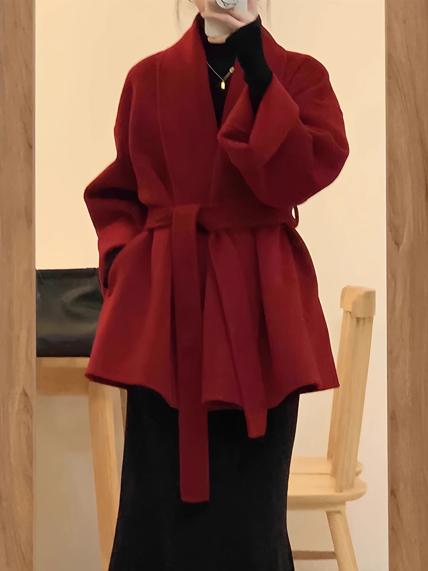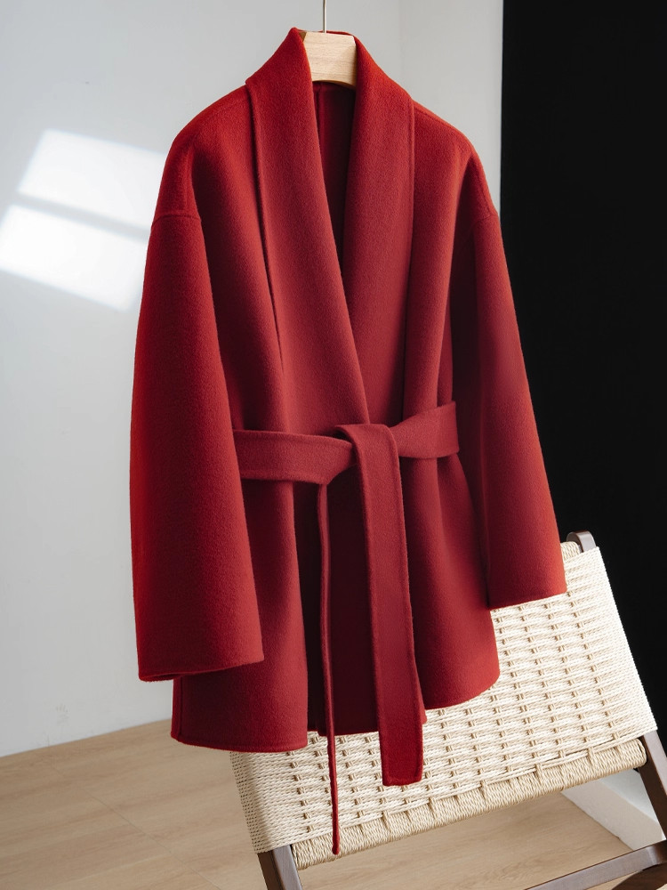 红色双面羊绒大衣女短款2025年秋冬新款小个子羊毛呢外套