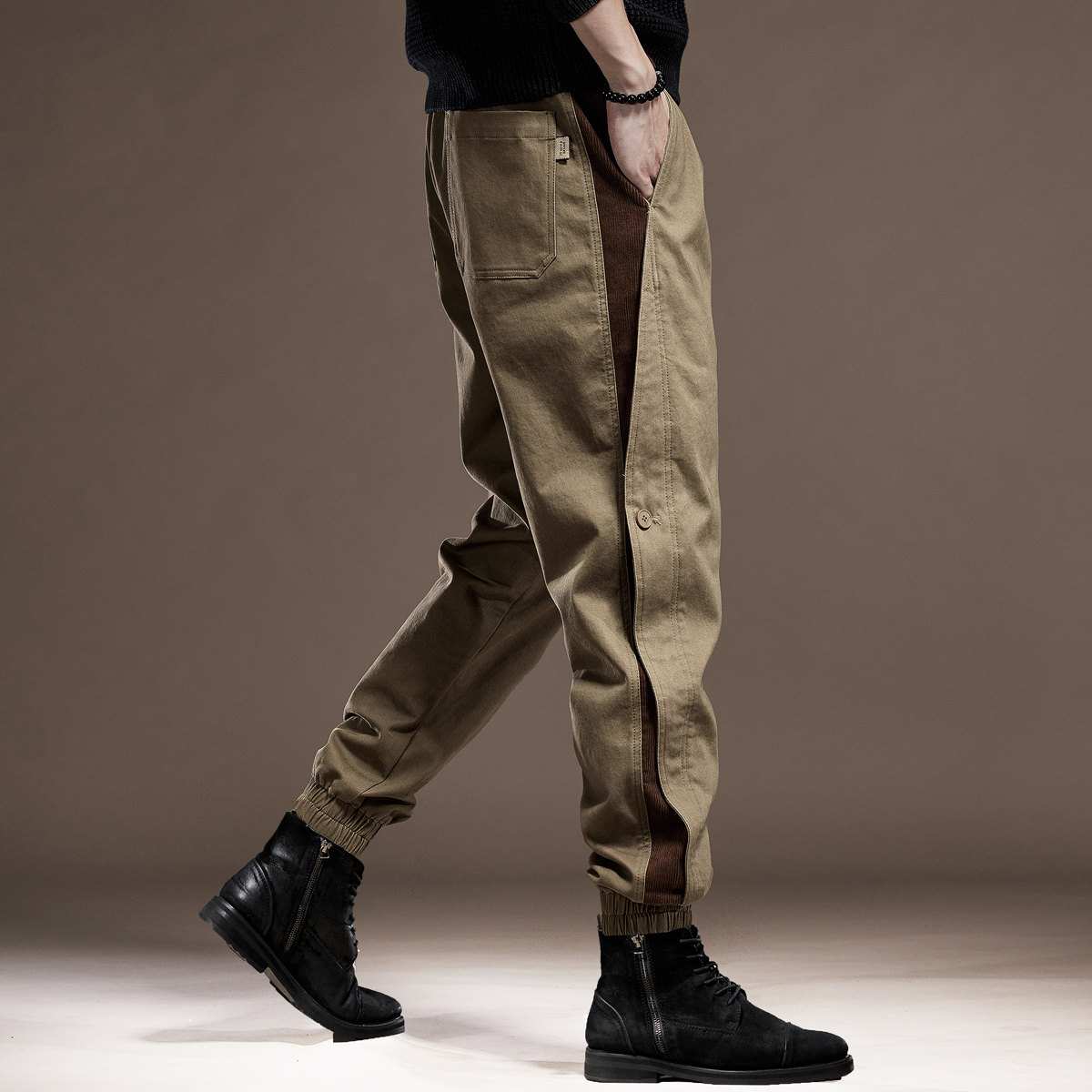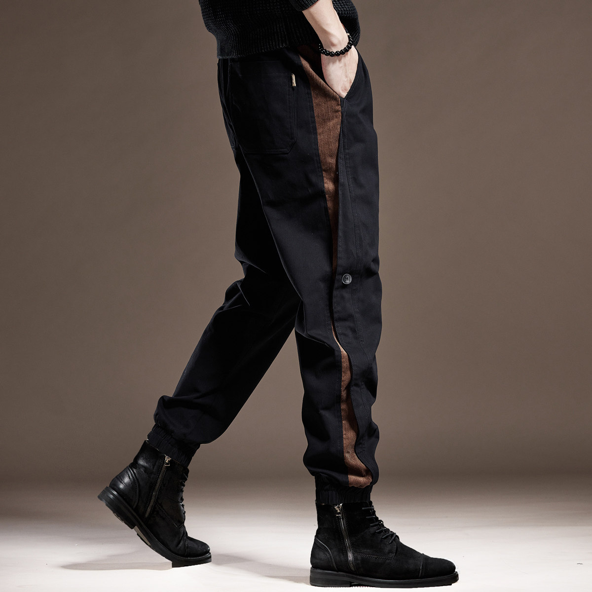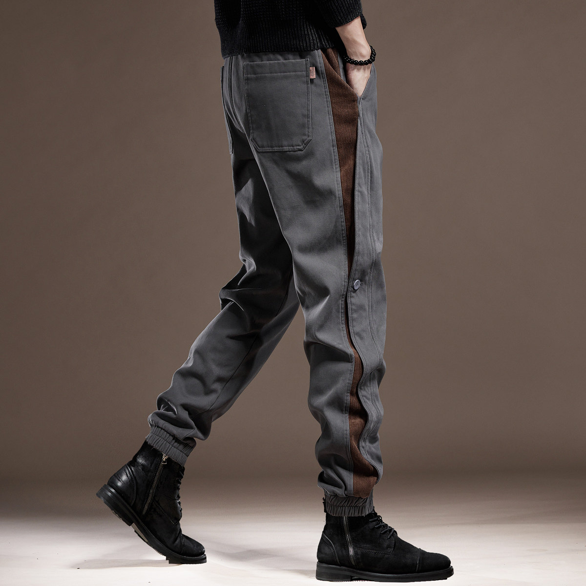 高端英伦复古拼接工装裤子男2025秋季加绒宽松大码束脚男士休...