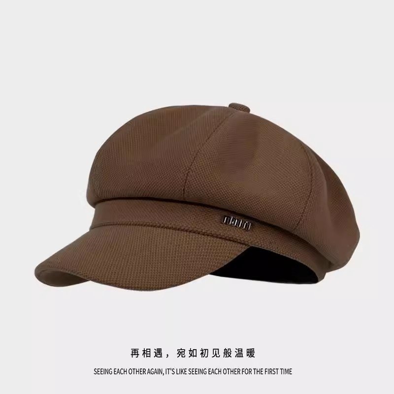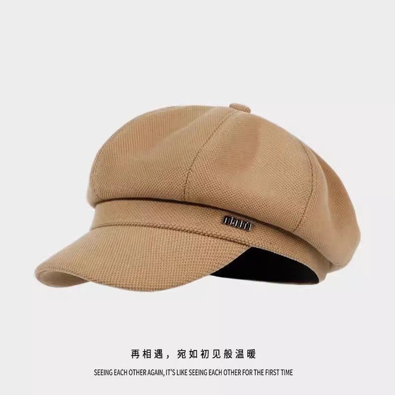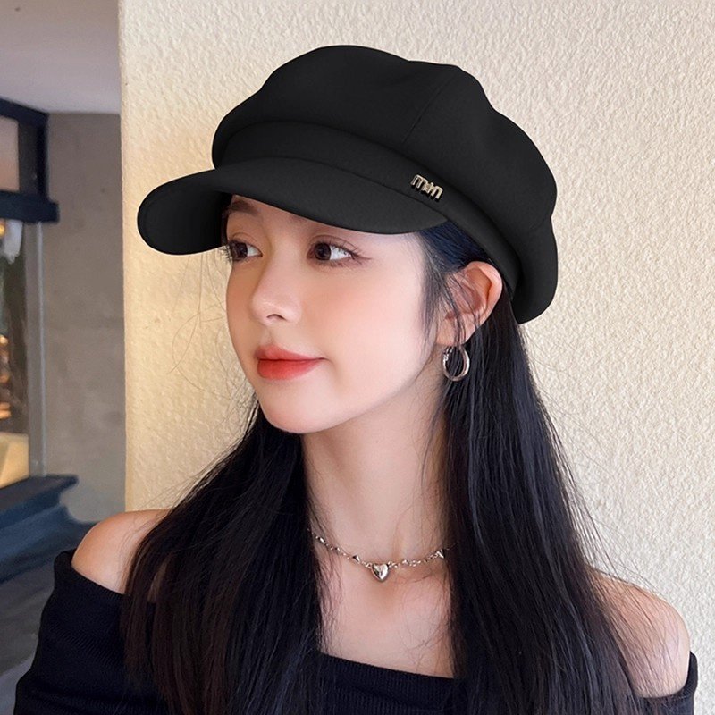 新款贝雷帽女秋冬显脸小鸭舌八角帽大头围法式复古黑色报童帽子潮