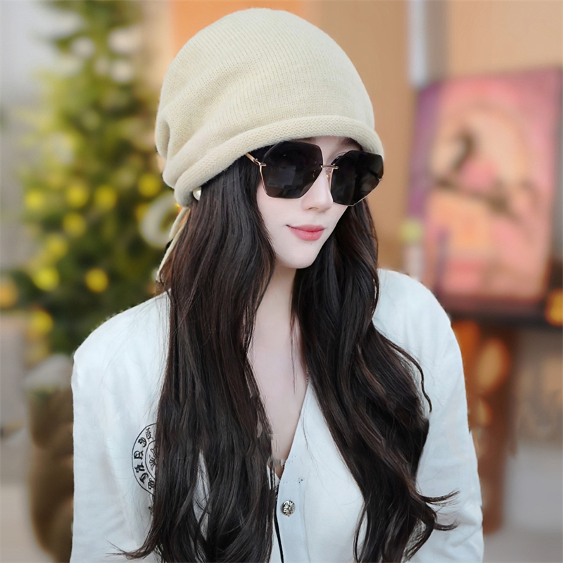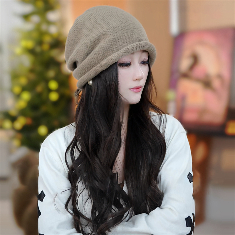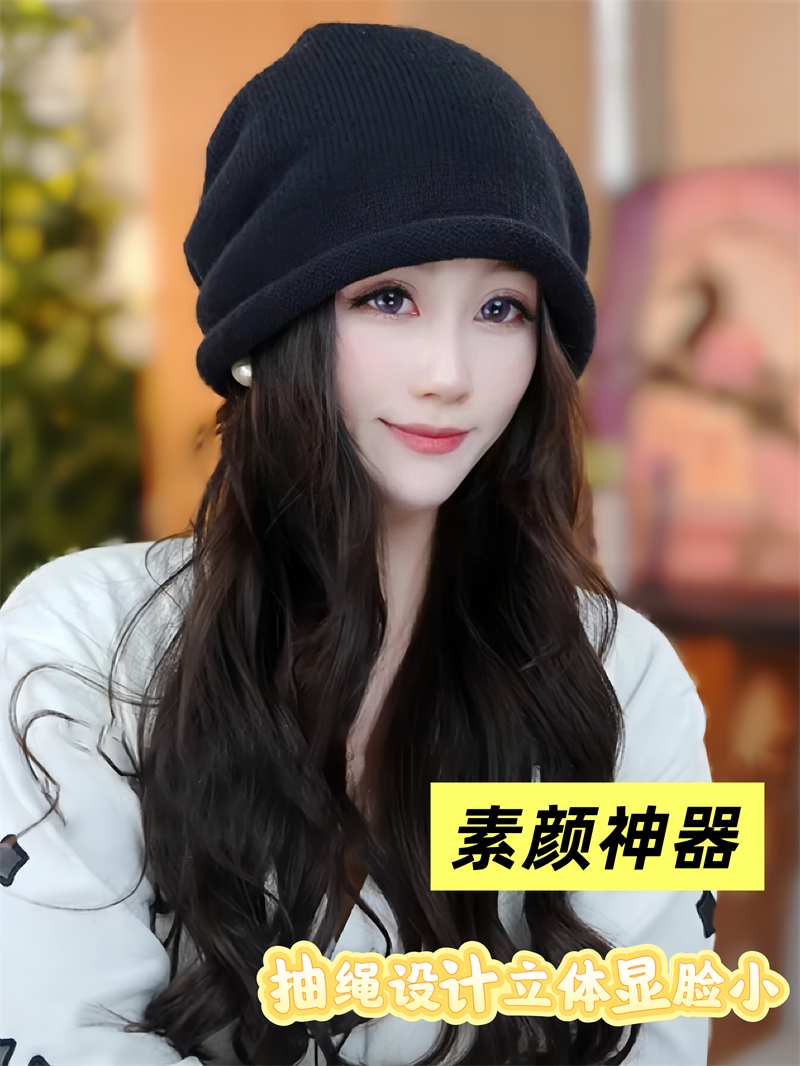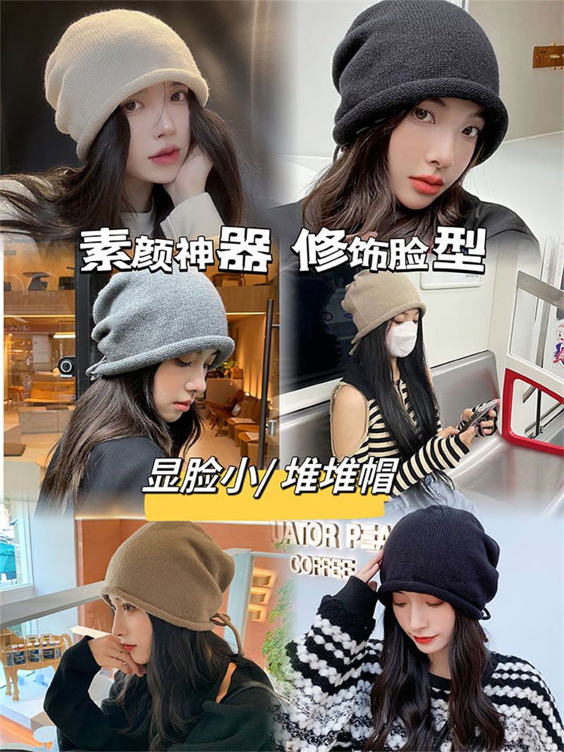 2025秋冬新款抽绳堆堆帽保暖护耳卷边针织帽百搭时尚大头围显...