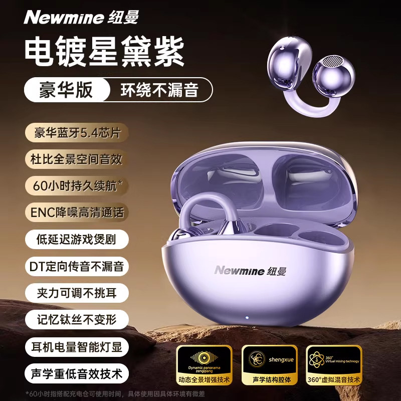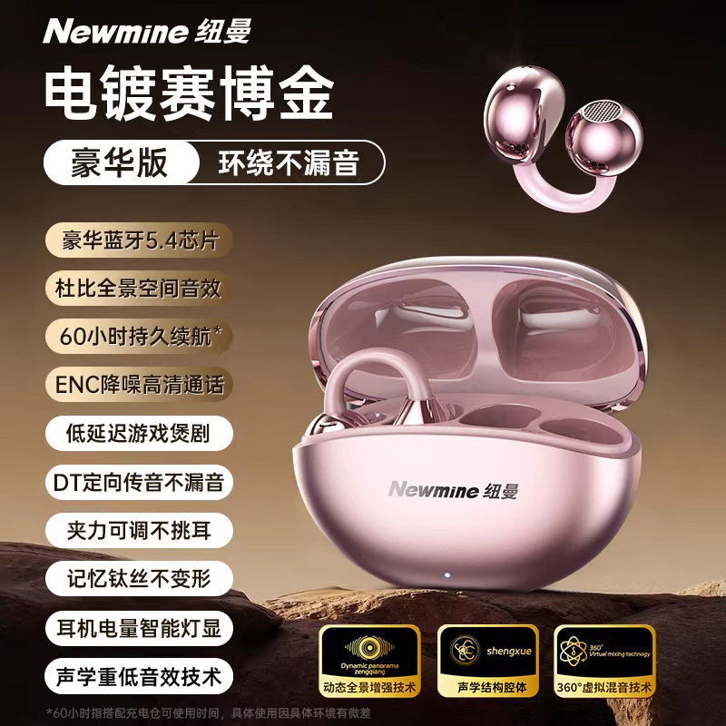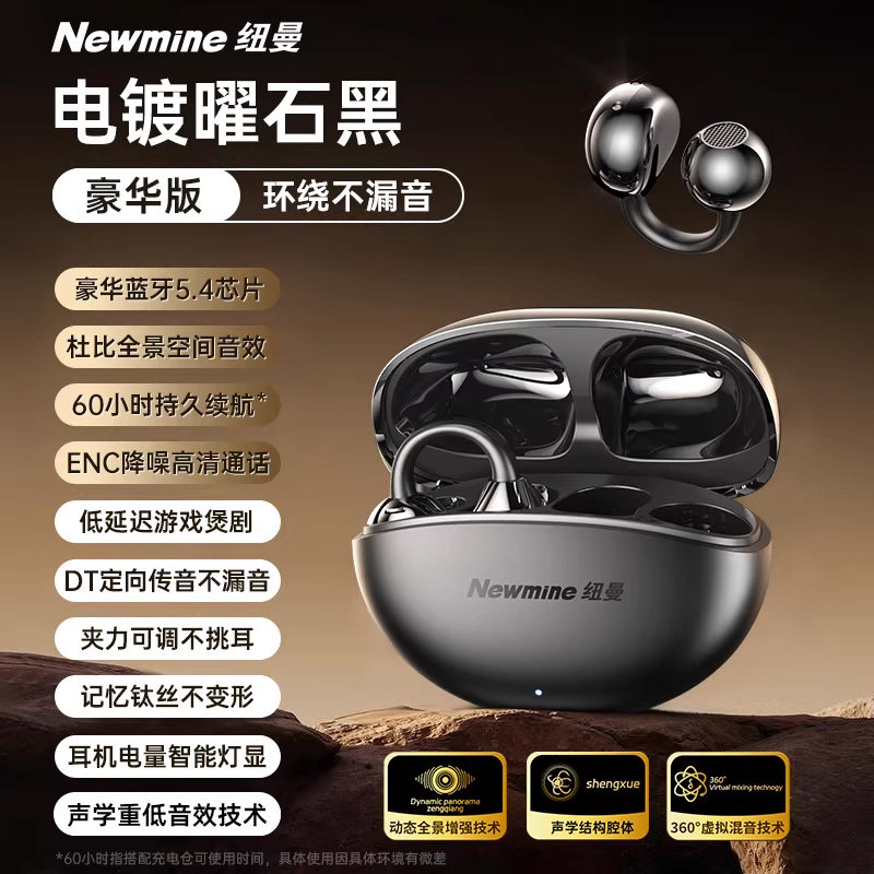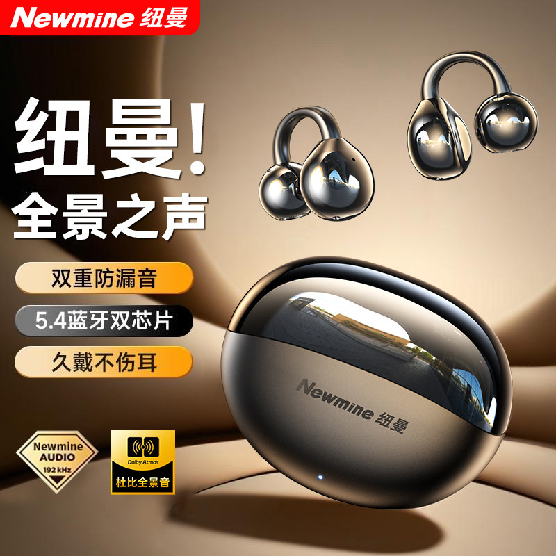 纽曼2026新款气骨传导蓝牙耳机高音质无线不入耳夹开放式久戴...